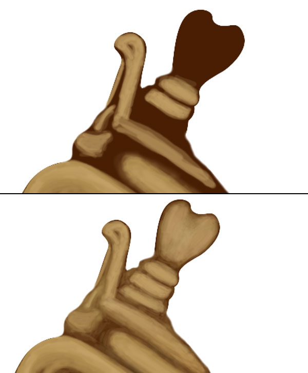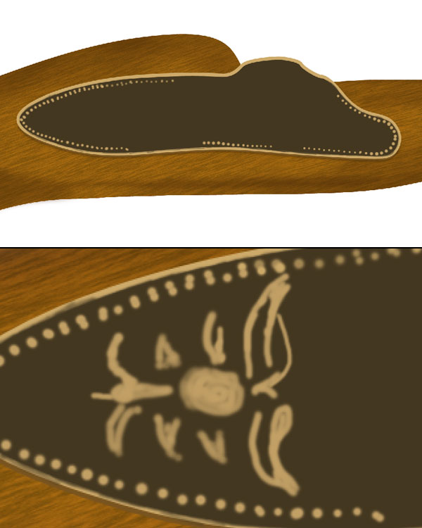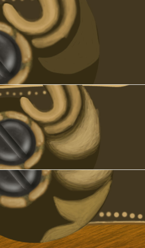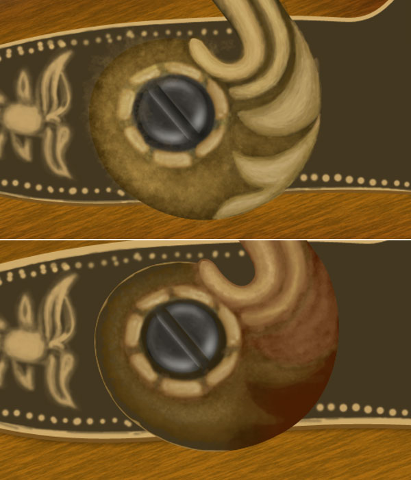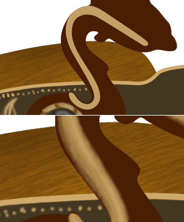Now we will create the neck golden portion of lever for this select a brush of size 10 pixels, colour #c2a065 & hardness 100% and start creating some outlines of golden texture. Select a soft brush of colour #ad8b4f with 50 % opacity and start adding more details to the neck.