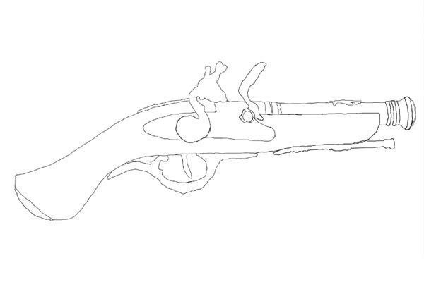 Select a brush of size 3 pixels and start drawing rough outlines of gun for reference. Don’t spend much time for perfection because rough outlines would work.