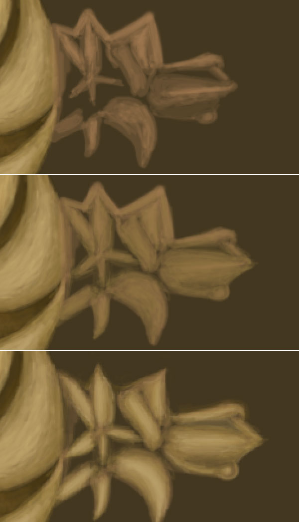 Now we will create lower portion of lever for this set foreground colour to #524523 and roughly draw gold leaf area. Next, change the foreground colour to #a28442 and add more details to the gold leaf. Repeat the same step and create another gold leaf.
