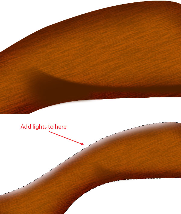 Here we need to add some light reflection in the wooden base layer for this, Ctrl + click wooden base layer, invert the selection, select a soft brush of colour white and start adding lights on the top portion of wooden base.