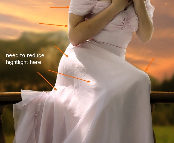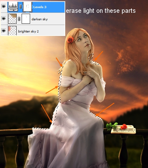 Take black brush and remove light on model shoulders, arm, and dress as I find them too bright: