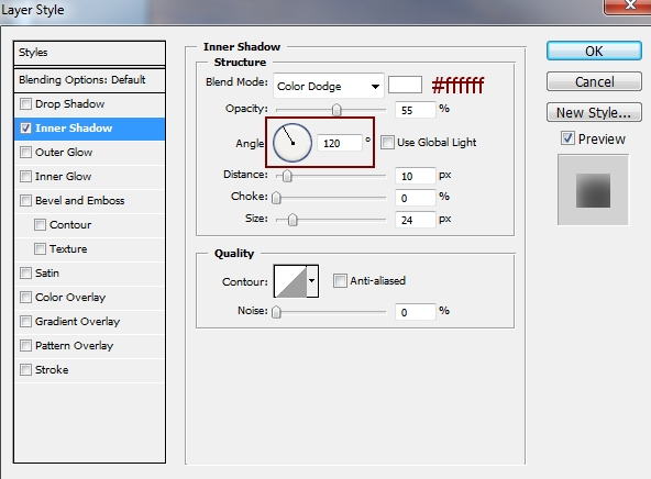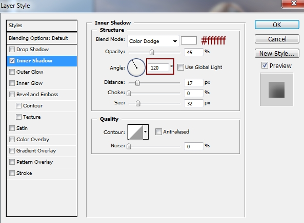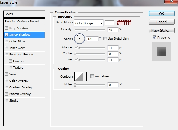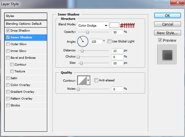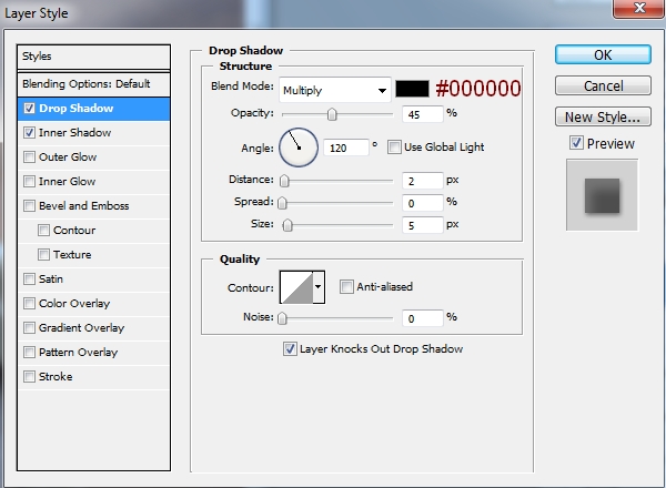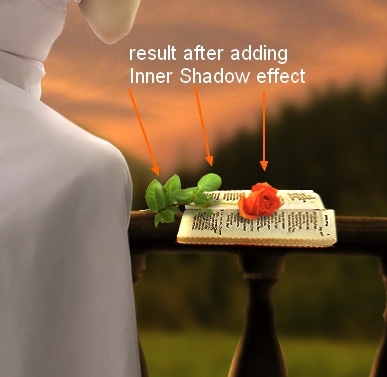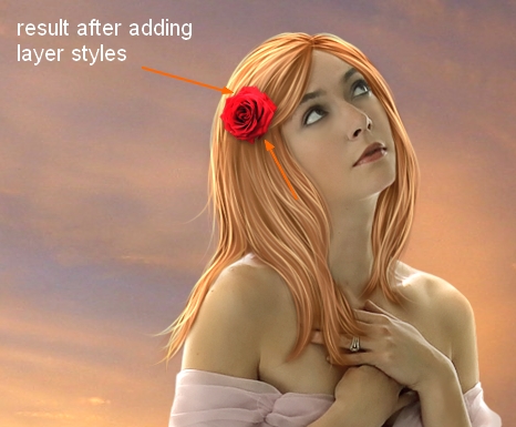 I use Layer Styles to add shadow and light for this rose. Right click rose layer, choose Blending Options: