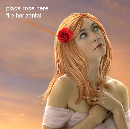 Extract rose 1 and position it on model hair, scale it down and flip it horizontally as we did in step 1.