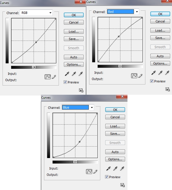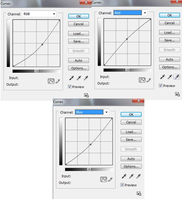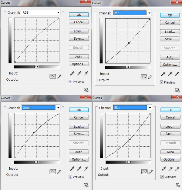 We can see that the contrast and color of meadow don’t match sky. To correct it, I use an adjustment layer with Clipping Mask for meadow. On this layer, go to Layer-New Adjustment Layer-Curves: