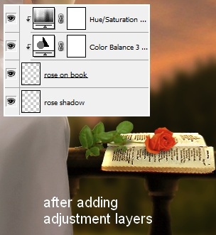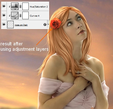 I make some adjustment layers for this rose with Clipping Mask.