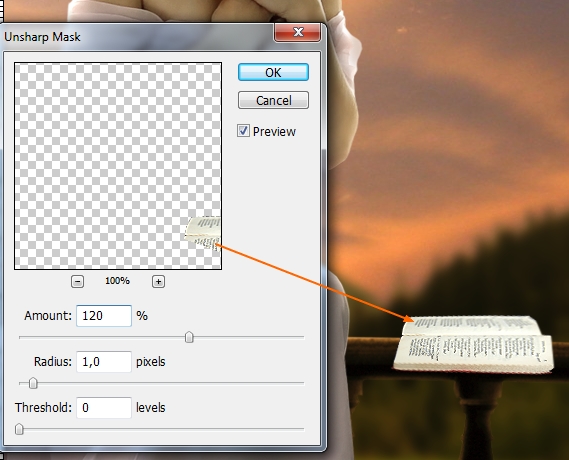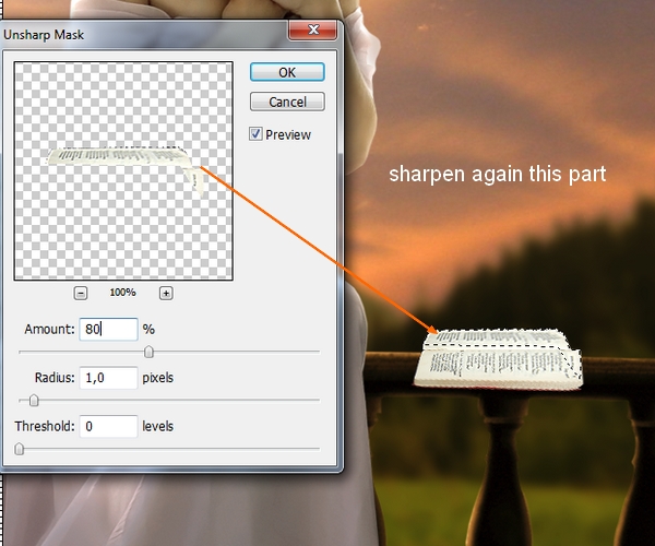 Create a new layer again and with same method we sharpen more a part of this book again but change the settings:
