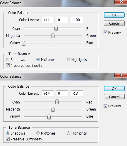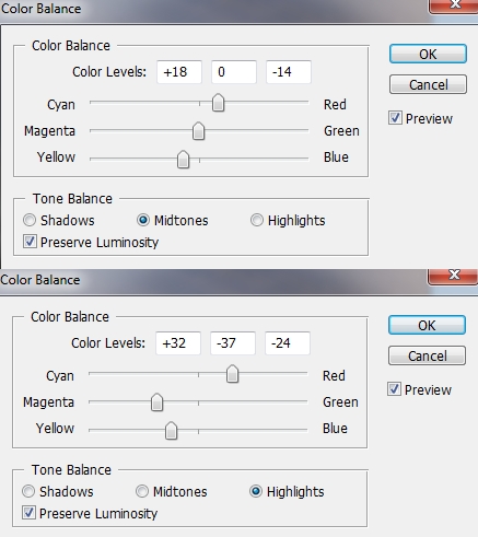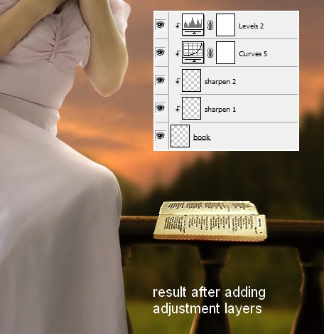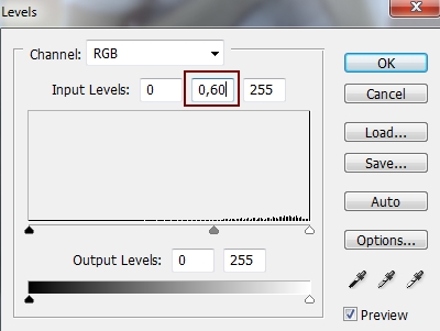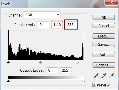 Final step: Go to Layer-New Adjustment Layer-Levels and change midtones and hightlights to give picture more contrast: