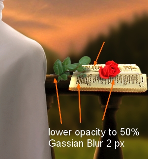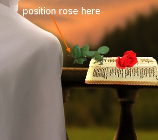 Open rose 2 stock. Isolate it from background, resize and transform it, place it onto the book: