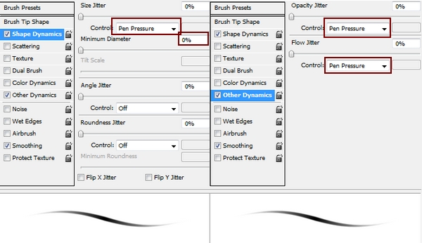 These settings only work if you’re using a graphic tablet. You can use Fade control instead of Pen Pressure for your mouse.