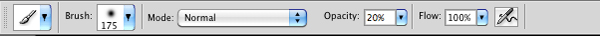 Switch to your Brush Tool (B) and select a large, soft round brush with an opacity setting of around 15-20%.