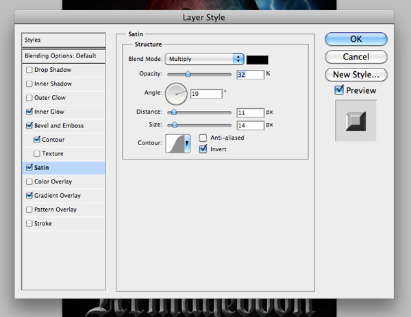 Next, check off the Satin option and use the following settings: